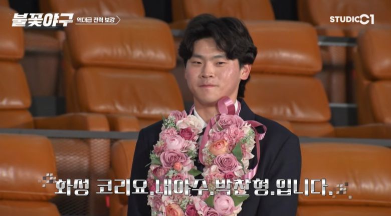 예능 ‘불꽃야구’ 신입 유격수 박찬형(23)이 롯데 자이언츠와 육성선수 계약을 맺고 마침내 프로 무대에 입성했다. 서울 중대초-언북중-배재고를 거쳐 독립야구팀 화성시 코리요에서 활약한 그는 올 시즌 타율 0.379, 26타점으로 타점 1위를 기록하며 두각을 나타냈다. 박찬형은 19일 방송된 ‘불꽃야구’에서 불꽃 파이터즈 멤버로 발탁됐다.