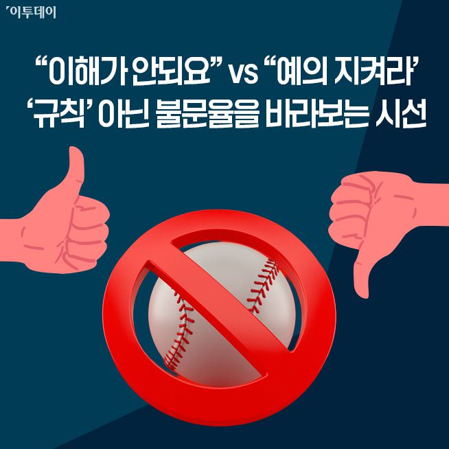 ‘불문율’을 어겼다는 이유로 열심히 달리고 열심히 던진 이들이 고개를 숙였는데요. 야구 감독과 선수들은 모두 당연하다는 듯 행동했지만, 팬들은 의문을 감추지 못했습니다.