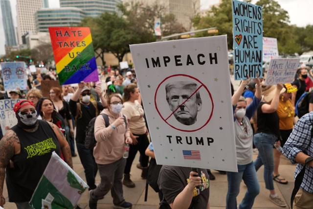 지난 2월 5일 미 텍사스주 오스틴에서 도널드 트럼프 대통령의 강력한 이민 단속과 추방 정책에 항의하는 시위가 열리고 있다. 오스틴=AP 뉴시스