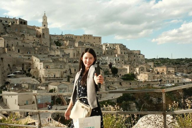 남보라는 20일 소셜 미디어에 "오늘은 이태리 남부 마테라에 왔어요. 뷰 맛집입니다"라는 글과 함께 여러 장의 사진을 게재했다.
