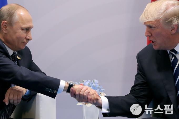 지난 2017년 7월 7일 독일 함부르크에서 열린 G20정상회의에서 블라디미르 푸틴 러시아 대통령과 도널드 트럼프 미국 대통령이 악수를 하고 있다. [사진=로이터 뉴스핌] |