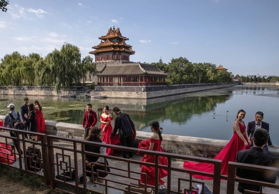 웨딩 촬영하는 중국 커플들. 기사 내용과 직접적 관련 없는 자료사진. EPA=연합뉴스 |