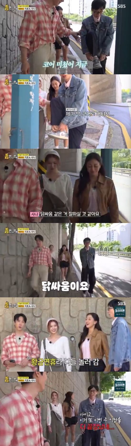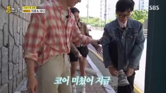 이후 이들은 첫 번째 틈 주인을 마나기 위해 이동했다. 이동을 하는 과정에서 지효가 유재석의 신발끈이 풀린 것을 발견하고 알려줬다.