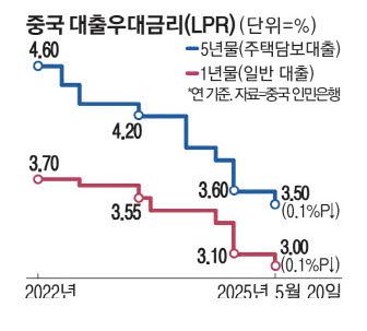 한편 디플레이션(경기침체 속 물가 하락) 우려가 커진 중국은 사실상 기준금리 역할을 하는 대출우대금리(LPR)를 7개월 만에 인하했다. 20일 중국 중앙은행인 인민은행은 일반 대출의 기준이 되는 1년물 LPR을 3.1%에서 3.0%, 주택담보대출의 기준이 되는 5년물 LPR을 3.6%에서 3.5%로 각각 인하했다.