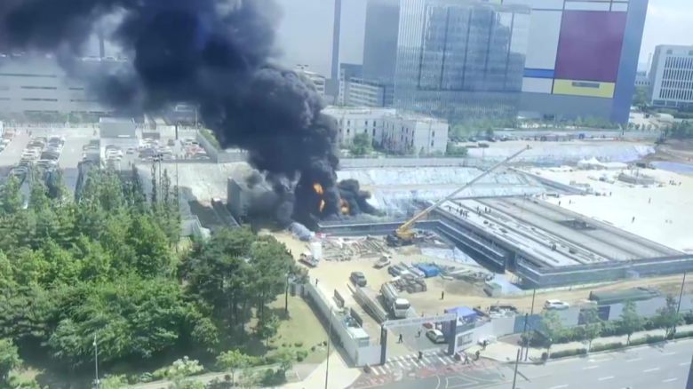 공사장 한가운데에서 붉은 화염과 함께 검은 연기가 솟구칩니다.