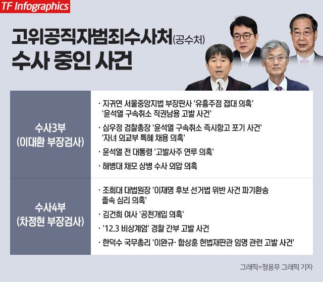 [더팩트ㅣ정채영 기자] 윤석열 전 대통령, 한덕수 전 대통령 권한대행이 신규검사 재가를 뚜렷한 이유없이 미룬 탓에 인력난에 허덕이던 고위공직자범죄수사처(공수처)가 8개월 만에 검사를 충원하면서 본격적인 수사력 보강에 나섰다. 최근 정치권과 법조계를 둘러싼 주요 사건들이 공수처에 고발되면서 수사 진행 속도에 관심이 쏠리고 있다.