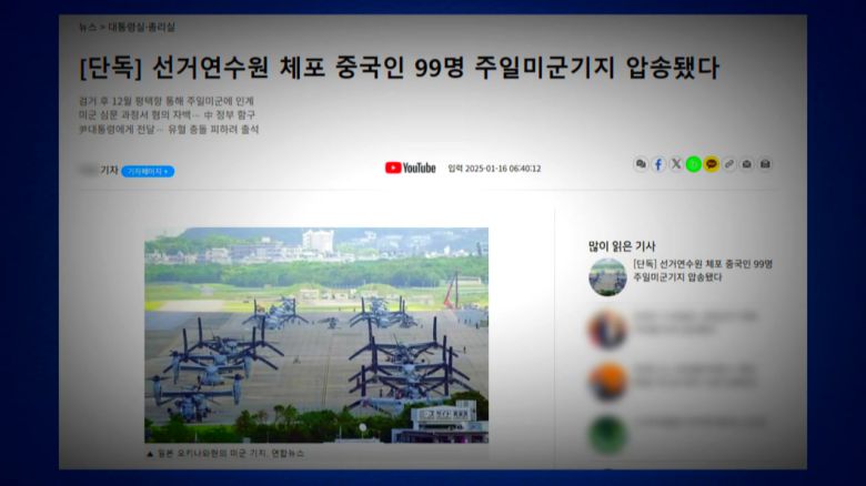 당시 매체는 이른바 '미군 소식통'을 인용한 보도라며 후속 기사를 이어갔는데, 해당 소식통의 실체는 미국 영화 캐릭터 '캡틴 아메리카' 복장을 하고 중국 대사관 침입을 시도했다 붙잡힌 윤 전 대통령 지지자로 드러났습니다.