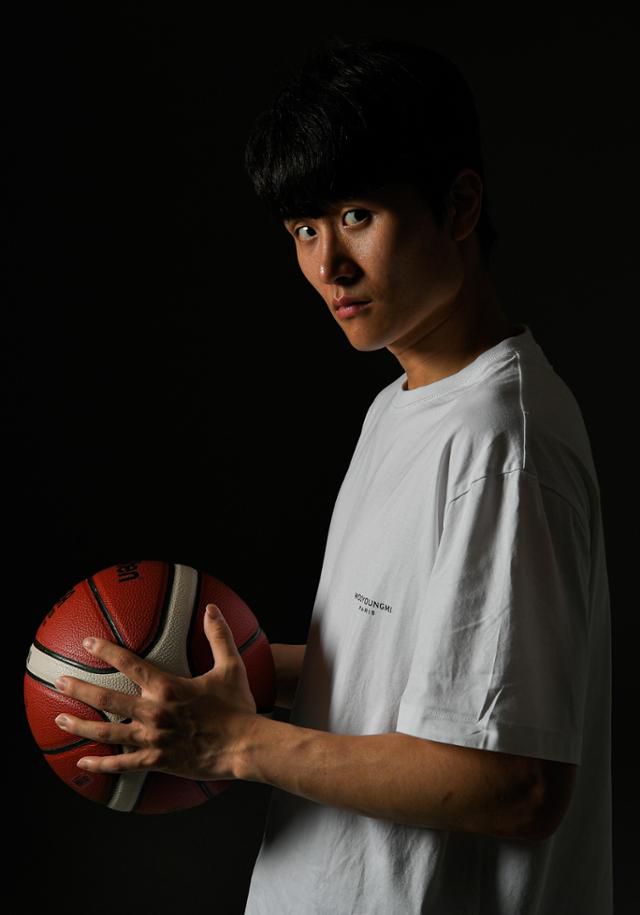 프로농구 창원 LG의 야전사령관 양준석이 20일 서울 중구 한국일보 본사에서 농구공을 들고 포즈를 취하고 있다. 남동균 인턴기자 |