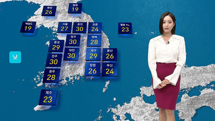 낮 기온 서울 27도, 대전 30도까지 오르며 오늘도 후덥지근하겠습니다.