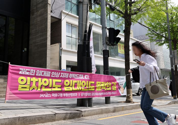 (서울=연합뉴스) 윤동진 기자 = 금융회사로부터 돈을 빌린 뒤 석 달 이상 연체해 '신용자'(옛 신용불량자)가 된 개인사업자가 1년 새 30% 가까이 급증했다. 대출이 있는 개인사업자 2명 중 1명은 3곳 이상 금융회사에서 돈을 빌린 다중채무자인 데다가, 1금융권에 밀려나 2금융권에서 고금리 빚을 진 경우도 빠르게 늘고 있어 상환 능력이 한계에 봉착했다는 경고음이 커지고 있다. 사진은 27일 서울 홍익대학교 인근 상가에 부착된 임대 관련 안내문. 2025.4.27 mon@yna.co.kr |