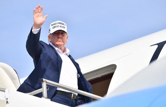 도널드 트럼프 미국 대통령이 2020년 7월 6일 뉴저지에서 워싱턴DC로 향하기 위해 에어포스원에 탑승하고 있다. (사진=AFP) |