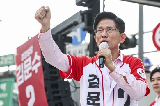 김문수 국민의힘 대선 후보가 20일 서울 강동구 광진교 남단사거리를 찾아 시민들의 지지를 호소하고 있다. 2025.5.20 김현민 기자 |