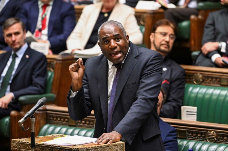 데이비드 래미 영국 외무장관이 20일(현지시각) 영국 런던 하원에서 이스라엘과 가자지구 전쟁에 대해 의원들에게 연설하는 모습. AFP연합뉴스 |