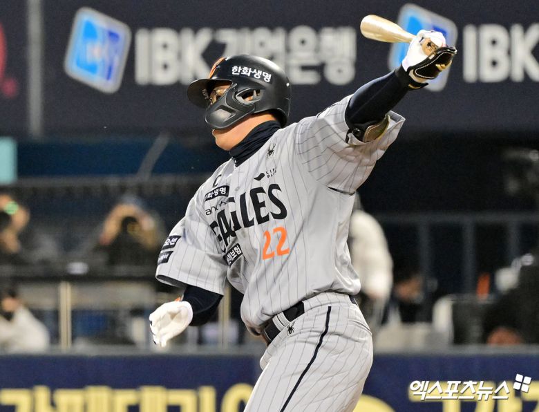 특히 이 기간 도합 12점밖에 뽑지 못하면서 공격을 풀어가는 데 어려움을 겪었다. 지난 주 한화의 팀 타율은 0.239로 키움 히어로즈(0.186), NC(0.220), SSG 랜더스(0.232)에 이어 네 번째로 낮은 수치를 나타냈다. 그만큼 주장의 어깨가 무거울 수밖에 없었다.