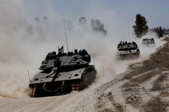 군용 차량이 이스라엘과 가자지구 국경 이스라엘 측에서 가자 지구로 향하고 있다. 로이터연합뉴스 |