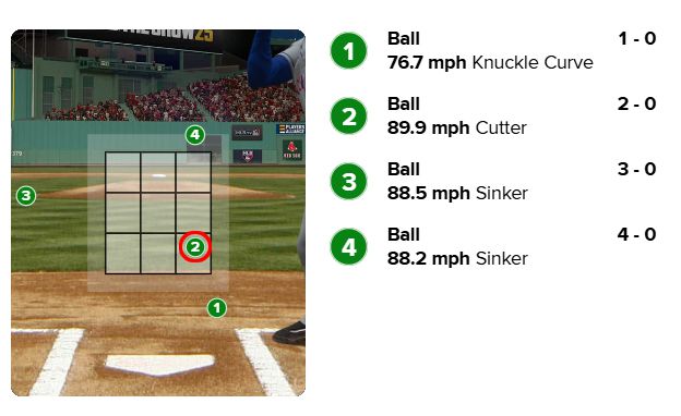 문제는 3회였다. 1사 후 프란시스코 린도어를 몸에 맞는 볼로 내보낸 뷸러는 소토와의 대결에서 2구째 시속 89.9마일 커터를 던졌다. 이 공은 스트라이크존을 통과한 것처럼 보였으나 이날 주심을 맡은 마이크 에스타브룩 심판은 볼을 선언했다.