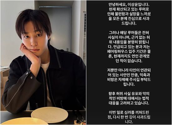 이상윤은 "억측과 비방은 자제해 주시길 부탁드린다"며 "향후 허위 사실 유포와 악의적인 비방에 대해서는 법적 대응을 고려하고 있다"고도 덧붙였다.
