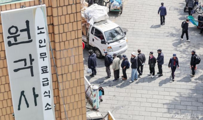 (서울=뉴스1) 민경석 기자 = 우리나라의 은퇴연령인구(66세 이상)의 상대적 빈곤율이 경제협력개발기구(OECD) 38개 회원국 중 가장 높은 것으로 조사됐다. 24일 국가통계연구원이 발표한 '한국의 지속가능발전목표(SDG) 이행현황 2025'에 따르면 2023년 기준 우리나라 은퇴연령 인구의 상대적 빈곤율은 39.8%로 전년(39.7%) 대비 0.1%포인트(p) 상승했다. 이날 서울 종로구 탑골공원 인근 무료급식소 앞에 어르신들이 길게 줄을 서 식사 차례를 기다리고 있다. 2025.3.24/뉴스1 Copyright (C) 뉴스1. All rights reserved. 무단 전재 및 재배포, AI학습 이용 금지. /사진=(서울=뉴스1) 민경석 기자 |