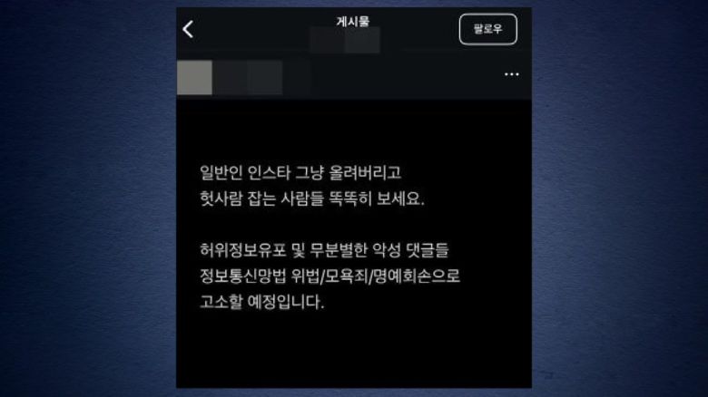 인터넷 커뮤니티에 한 누리꾼이 이 여성의 SNS 사진과 조롱 섞인 글을 올리자 강경 대응에 나선 겁니다.