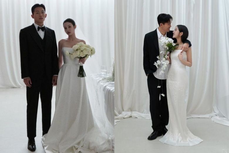 축구 국가대표 정우영이 배우 이광기의 딸 이연지와 웨딩화보를 공개했다.