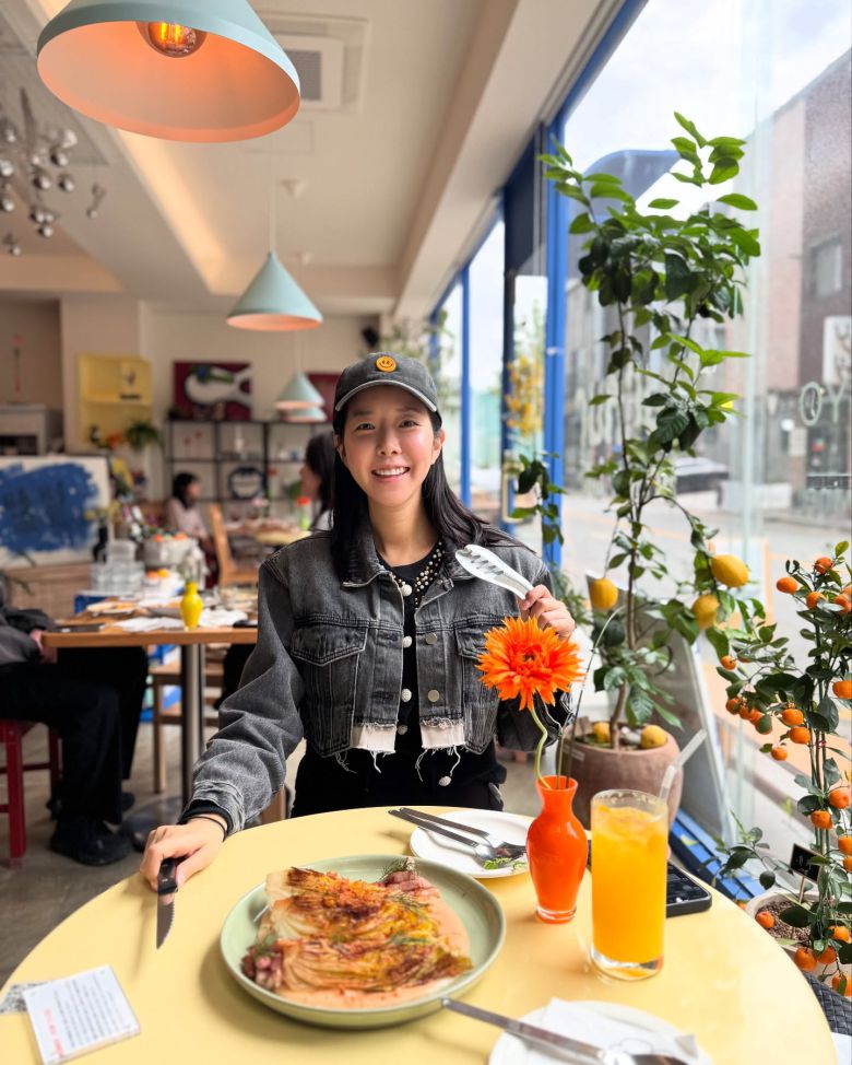 사진 속에는 카페를 찾아 힐링을 만끽하는 김지혜의 모습이 담겨 있다. 눈에 띄게 불러온 배가 시선을 강탈한다.