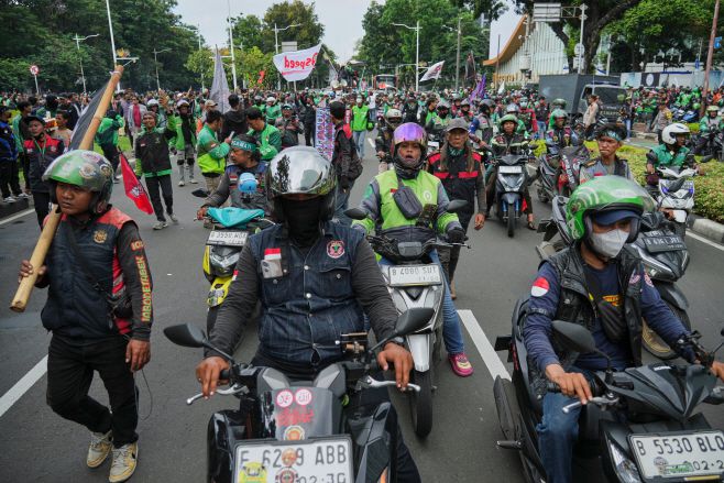 21일 로이터통신과 현지매체 등에 따르면 전날 인도네시아 전역에서는 고토의 차량공유·배달서비스 고젝과 그랩 소속 오토바이 기사들이 오토바이와 함께 거리로 나와 시위를 벌였다. 이들은 고젝·그랩 기사들의 상징이자 근무복인 초록색 재킷과 헬멧을 쓰고 시위에 참가했다. 수도 자카르타의 대통령궁·국회의사·교통부 청사 인근에는 수백 명의 기사들이 몰렸고, 수라바야·반둥 등 주요 도시에서도 동시에 시위가 벌어졌다.