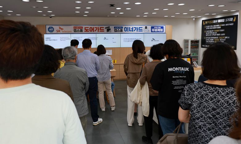 지난 20일 서울 시내 한 SK텔레콤 공식인증 대리점에서 고객들이 유심 교체를 위해 줄을 서고 있다. 연합뉴스 |