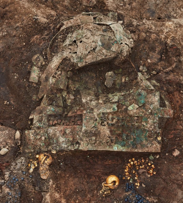 경주 황남동 120-2호 무덤은 화려한 장신구 일체가 망자가 착장한 상태 그대로 출토돼 화제가 됐다. 무덤 주인은 6세기 신라 최고위층 10대 여성으로 추정된다. 금동관을 얼굴에 덮은 그는 양쪽 귀에 금귀걸이를 걸고 금동신발을 신고, 작은 은장도가 매달린 은허리띠를 차고, 열 손가락마다 은반지를 낀 채 묻혔다. 이한상 대전대 교수는 “화려한 금동관 위에 부착한 비단벌레 장식은 착장자의 사회적 위상을 보여주는 아이템”이라며 “이 고분이 보존 상태가 워낙 좋아서 부식되지 않고 1500년간 남아있었던 것 같다”고 했다.