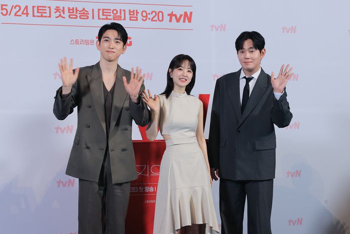 배우 박진영(왼쪽부터), 박보영, 류경수가 21일 서울 영등포구 CGV 영등포에서 열린 tvN 드라마 ‘미지의 서울’ 제작발표회에서 포즈를 취하고 있다. 사진 | 연합뉴스 |
