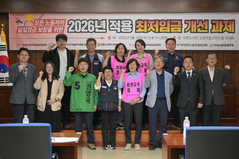 21일 민주당과 진보당이 민주노총·한국노총과 함께 개최한 '모든 노동자의 실질임금 보장을 위한 최저임금 개선 과제' 토론회에서는 △특수고용자·프리랜서·플랫폼 노동자 최저임금 적용 △최저임금위원회 구성 개편 △저임금 노동자 방안 △최저임금 인상 등이 논의됐다. 이미선 민주노총 부위원장은 "새로 선출되는 대통령은 윤석열 정권이 어지럽힌 노동법 개악과 민생을 살리기 위해 노력해야 한다"며 "첫걸음은 2026년 최저임금 결정으로 평가받게 될 것"이라고 목소리를 높였다. 내년에 적용될 최저임금 결정은 6월 말이 법정시한이다.