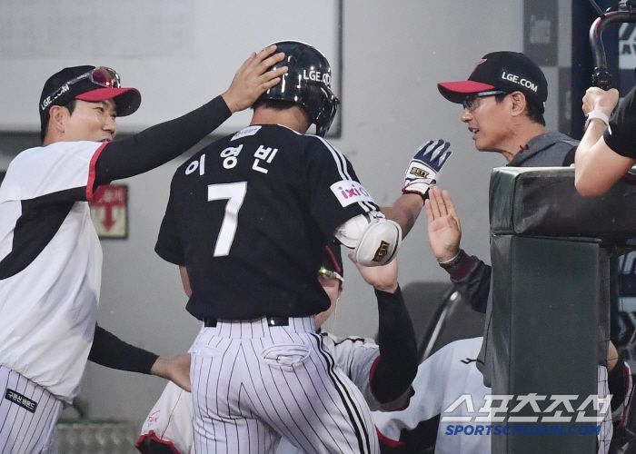 [포토] 염경엽 감독 '이영빈 시즌 1호 홈런 축하해'