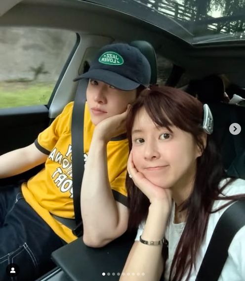 사진 속 두 사람은 편안한 옷차림으로 차 안에서 똑같은 포즈를 취하며 셀카를 찍고 있는 모습이 담겼다. 이어 두 사람은 쇼핑을 하고 맛있는 밥을 먹으며 달달한 데이트를 즐겼다.