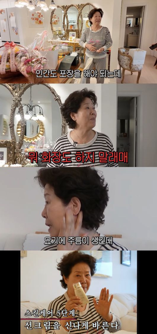 마지막으로 선크림까지 바르며 스킨케어를 마무리한 선우용녀는 “몸을 마음껏 즐기다 가야 한다. 우린 살다가 병들어 죽는데 생로사를 해야 한다. 건강하게 살다 죽어야 한다”라고 생각을 전했다.