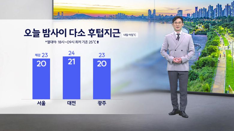 내일 서울 아침 기온이 20도, 대전 21도, 광주 20도로 열대야 기준인 25도에는 미치지 못하겠습니다.