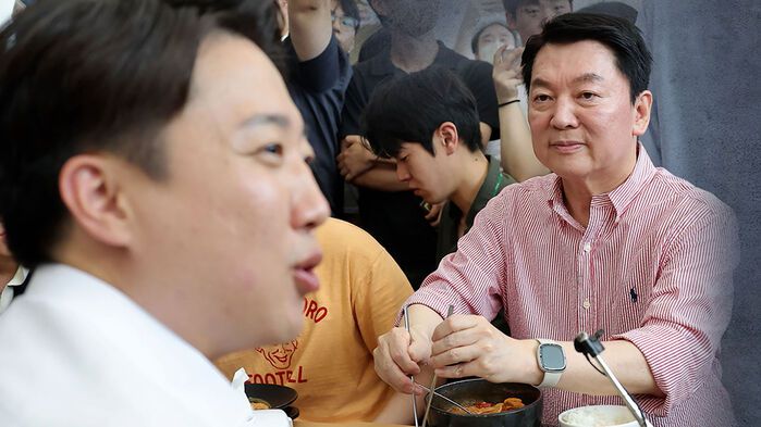 국민의힘 공동선거대책위원장인 안철수 의원이 경기도 성남에서 선거 운동을 벌이던 이준석 개혁신당 후보를 찾아갔습니다.