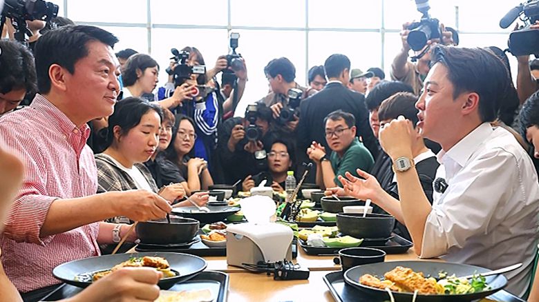 이준석 후보는 지금 대학교들을 찾아다니면서 학식을 먹는 선거운동을 하고 있는데, 바로 오늘(21일) 그 자리에 안철수 의원이 직접 찾아가서 같이 식사를 한 겁니다.