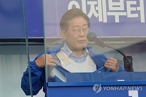 이 후보는 국민의힘 김문수 대선 후보 등이 '방탄조끼 입고 방탄유리 치는 사람이 대통령이 돼서야 되겠나'라는 취지의 비판을 이어가는 데 대해 "반성해도 모자랄 자들이 국민을 능멸하고 목이 찔린 정치인을 두고 장난해서야 되겠나"라고 지적했다.