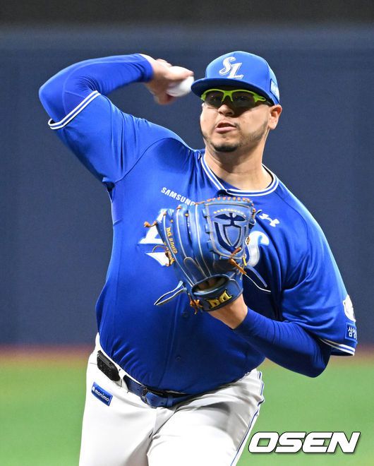 [OSEN=고척, 이대선 기자] 21일 오후 서울 고척스카이돔에서 2025 신한 SOL Bank KBO리그 키움 히어로즈와 삼성 라이온즈의 경기가 열렸다.키움은 하영민, 삼성은 후라도를 선발 투수로 내세웠다.1회말 무사에서 삼성 선발투수 후라도가 역투하고 있다. 2025.05.21 /sunday@osen.co.kr