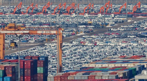 2023년 한국 제조업 국내총생산(GDP)의 미중 수요 의존도가 24.5%에 달한다고 경총이 21일 발표했다. 미중 무역갈등이 심화되면 한국 경제가 가장 큰 타격을 입을 것이란 우려석인 전망이 나온다. 사진은 지난 2월 경기도 평택항에 수출용 차들이 세워져 있는 모습. 연합뉴스 |