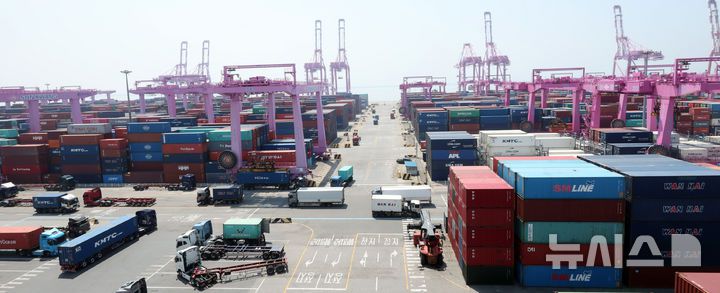 [인천=뉴시스] 전진환 기자 = 인천 연수구 인천신항 컨테이너 터미널에서 컨네이너가 쌓여 있다. 2025.05.12. amin2@newsis.com |