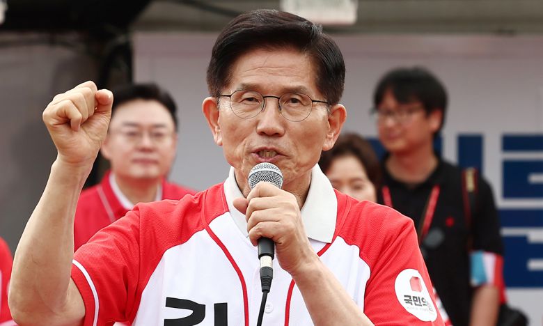 국민의힘 김문수 대선 후보가 21일 경기 동두천시 지행역 광장에서 유세를 하고 있다. 연합뉴스 |