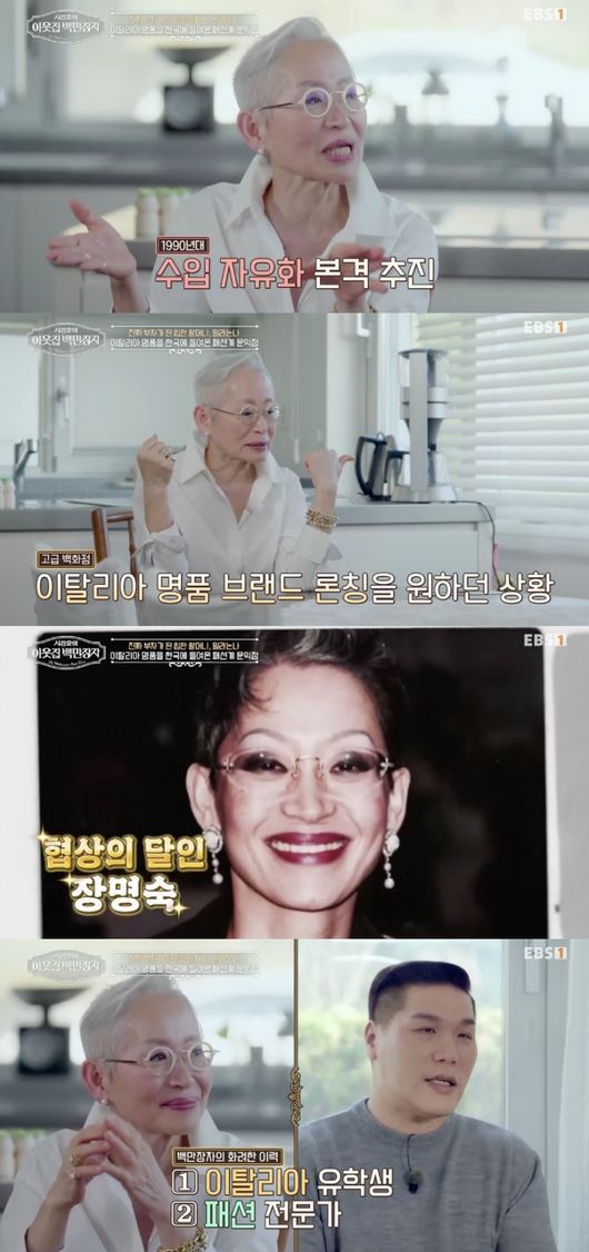 21일 방송된 EBS, E채널 공동 제작 '서장훈의 이웃집 백만장자'(이하 '이웃집 백만장자’)에서는 ‘대한민국에서 가장 힙한 할머니’ 밀라논나 장명숙이 출연해 다양한 이야기를 나눴다.