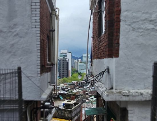 서울 종로구 충신1구역의 좁은 골목길을 따라 늘어선 주택. 충신1구역 내 빈집 대다수는 2m 미만 골목길을 연접하고 있는 접도불량 필지에 위치해있다. 이지은 기자 |
