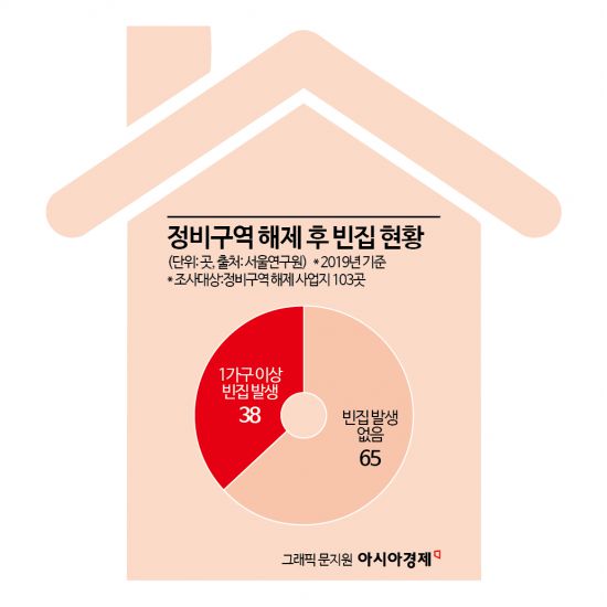 뉴타운 출구전략에 따른 대가는 혹독했다. 서울연구원 조사에 따르면 2019년 서울 내 정비구역에서 해제된 사업지 중 103곳을 현장 조사한 결과 226가구의 빈집이 생겨난 것으로 나타났다. 1가구 이상 빈집이 생겨난 구역은 38곳에 달했다. 전체 빈집의 55.3%(125가구)의 경우 4개의 구역(종로구 옥인1구역·충신1구역·사직2구역·성북구 성북4구역)에 모여 있다.