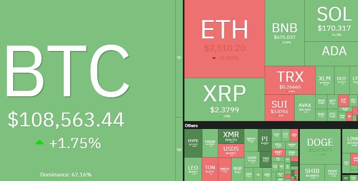 이더리움(ETH)은 전일 대비 0.09% 하락한 2510달러, XRP는 1% 오른 2.37달러, 바이낸스코인(BNB)은 3.8% 상승한 675달러, 솔라나(SOL)는 1.3% 오른 170달러, 카르다노(ADA) 역시 1% 남짓 상승한 0.76달러, 수이(SUI)는 -0.1% 내린 3.87달러를 기록했다. 밈코인 대표주자인 도지코인(DOGE)도 1.5% 상승해 0.22달러에 거래됐다.