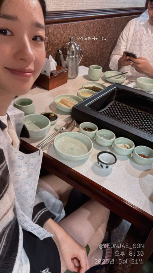 손연재는 지난 21일 “우리 요즘 사귀나?”라며 사진을 공개했다. 사진 속에서 손연재는 남편과 고깃집에서 고기가 나오기를 기다리며 데이트를 즐기고 있는 모습이다.