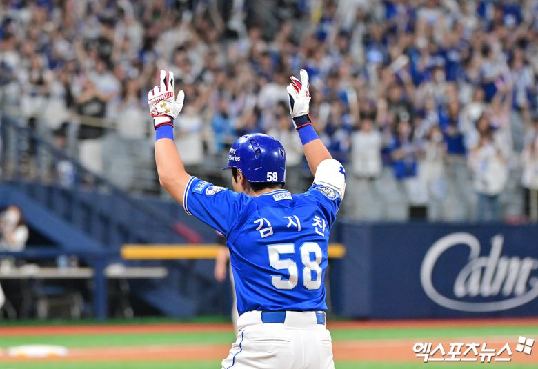 김지찬은 6회초 1사 주자 없는 상황서 좌전 안타로 출루했다. 후속 김성윤의 유격수 땅볼에 2루에서 포스아웃됐다. 7회초 2사 1, 2루에선 몸에 맞는 볼로 출루했다.