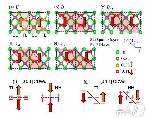 이 교수팀은 산화하프늄 강유전체의 특정 결정 방향에서 형성되는 대전된 도메인 벽이 오히려 벌크 영역보다 낮은 총 에너지 상태를 가질 수 있다는 사실을 이론적으로 확인했다.