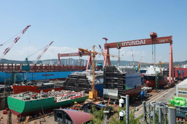 7일 HD현대중공업 울산조선소 독에서 선박들이 건조되고 있는 모습. HD현대중공업 제공 |