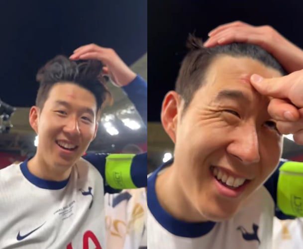 결승전이 끝난 뒤 손흥민은 토트넘의 주장으로서 선수들 앞에서 15㎏에 달하는 우승 트로피를 번쩍 들며 ‘챔피언 세리머니’를 펼쳤다. 이후 방송 인터뷰에 나선 손흥민의 이마에는 붉은색 상처가 나 있었다. 결승전 종료 휘슬이 울릴 때까지는 보이지 않던 상처였다.